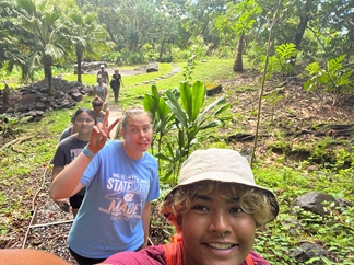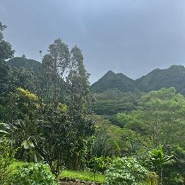 Lyon Arboretum and learn about many different plants; invasive and native. We ate some cool fruits such as mountain apples and we helped pull the invasive plants, mycelium! It started to rain but we learned so much about conserving the native flora and all the important work they do at the Lyon arboretum to help ensure the survival of the species, through seed cultivation and careful maintenance!