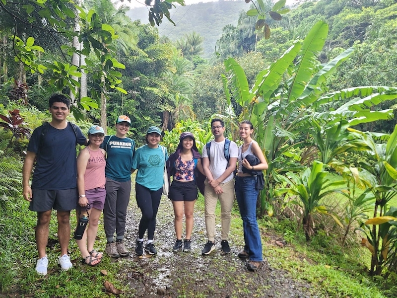 As our bus pulled into the parking lot, the sheer expanse of the greenery with such magnificent greens that were only to be contrasted by an equally fitting vibrance of oranges and reds in the flowers of certain plants filled our view. We then made our way through a tour of the facilities and laboratories, which was an equally intriguing quest. In the micropropagation facility we learned that thousands of endangered or rare species of plants were being grown and preserved in tissue culture to allow for safe-keeping, potential reintroduction back into their natural habitats, and research. We were also informed of a seed-bank facility which hosted and preserved tens of thousands of seeds for relatively the same purposes. We were then introduced to the greenhouse facilities and their importance and relation to the other two facilities. Learning about the processes involved in each of the facilities, from humidity and temperature control in the greenhouses to the sterilization process of plants prior to their entry into the chamber tubes containing a nutrient medium for growth in the micropropagation facility, was a very interesting and informative experience. Having been both fascinated and informed, we made our way to be “breath-taken” as we embarked on a hike towards ‘Aihualama Falls. It is difficult to describe just how beautiful both the scenery and greenery was on our hike, but I hope it will suffice in stating it was equally as beautiful as it was valuable the opportunity to be able to compare and share perspectives about the climate variables and plants that each of us students brought from the different regions that we came from.